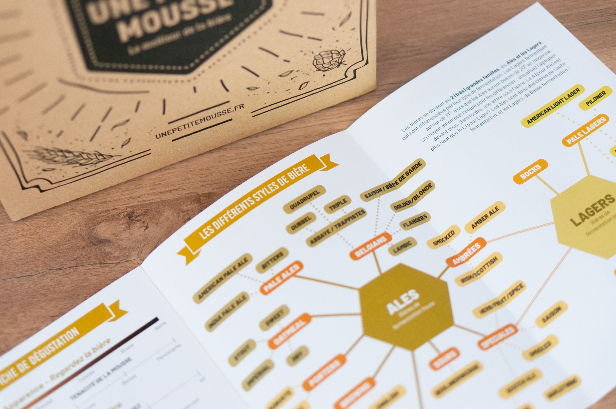 La box de bières Une Petite Mousse est récemment passée entre les mains de notre talentueuse graphiste pour arborer ce superbe graphisme ! Une apparence épurée mais délicate et bourrée de vitalité grâce à ses illustrations inspirées de la BD qui abordent avec finesse l'univers brassicole. Un nouveau design pour accueillir les sélections pointues de notre biérologue qui a largement conquis l'ensemble de nos abonnés ! Deuxième bonne nouvelle : Les guide de dégustation Une Petite Mousse sont eux aussi passés sous la plume, les papilles, la souris et le stylet de notre biérologue et de notre graphiste...